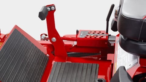 Foot-operated deck lift, with adjustable pedal, can change cut height in 1/4" increments from 1.5"- 4.5".