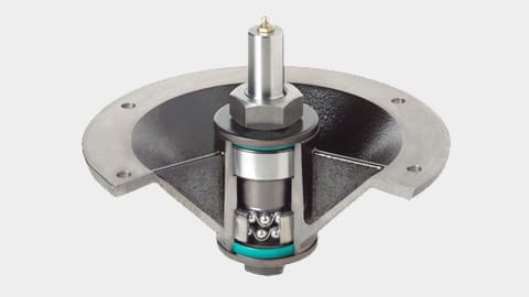 Herculesâ„¢ II spindles; 10" dia. cast-iron with industrial double row angular contact ball bearing with 1 3/16" dia. shaft. Contact ball bearings with 1 3/16" dia. shaft.